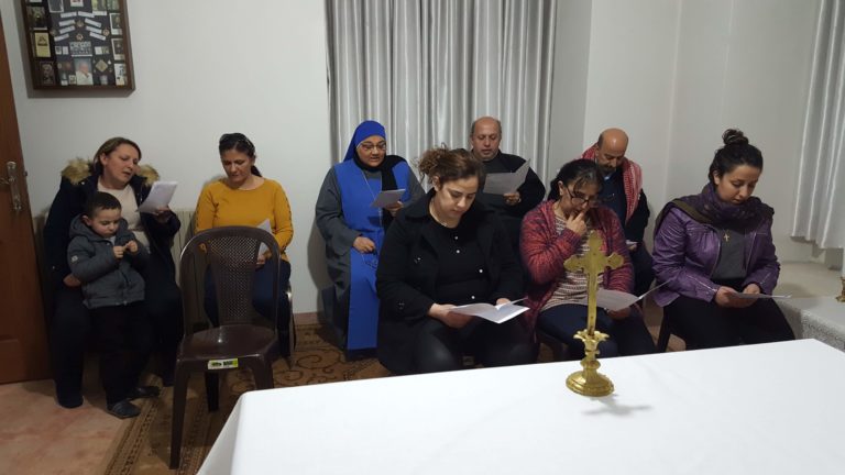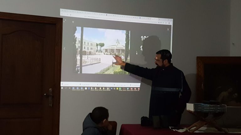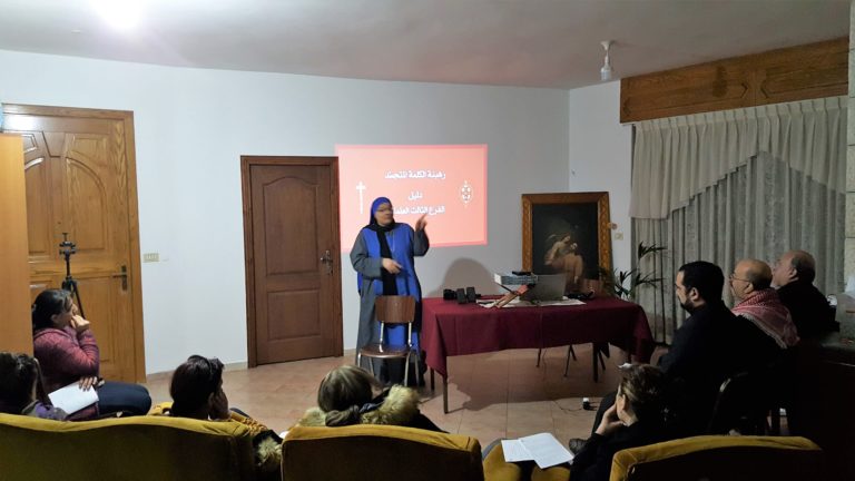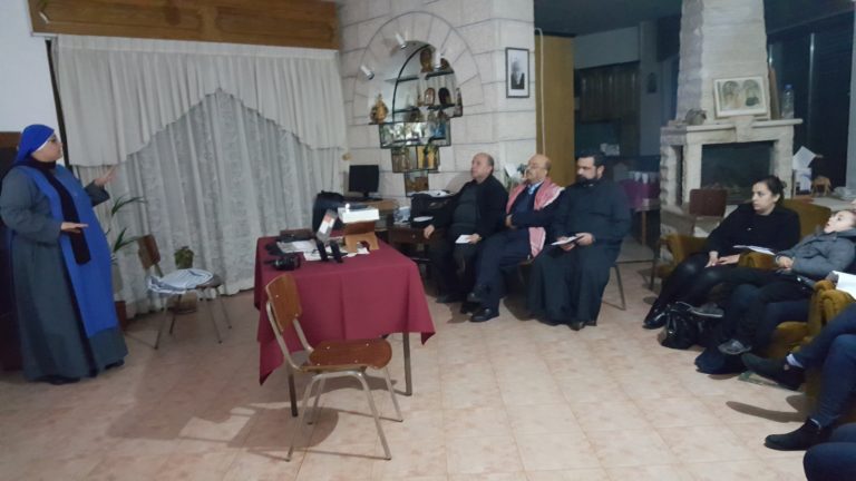 بدأ الاجتماع بصلاة مسبحة الرحمة الالهية في كنيسة بيت الراهبات ثم بمقدمة موجزة لما سيتم مناقشته في اجتماع هذا الشهر قدمها الاب بولص المسؤول العالم عن الرهبنة العلمانية الثالثة في الاراضي المقدسة.