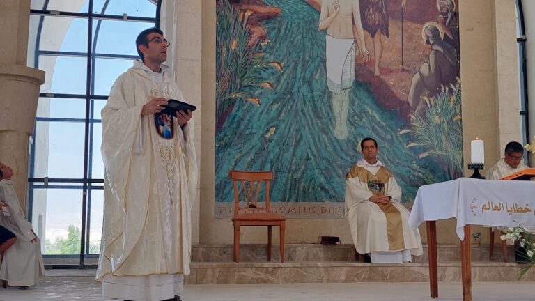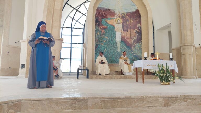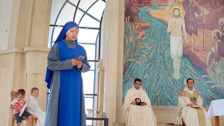 احتفلنا بعيد التجلي على ضفاف نهر الأردن في نفس المكان الذي تعمد به الرب على يد يوحنا المعمدان – كما قال الأب نيستور أندرادا في عظته -، حيث ،” هنا ” بعد أن تعمد الرب على يد يوحنا المعمدان ، تم سماع الصوت الله الآب الذي قال: “هذا هو ابني الحبيب ، فله اسمعوا”. في هذا المكان المقدس استطعنا الالتقاء كعائلة رهبانية ، مع آباء الكلمة المتجسد وأخواتنا الراهبات “خادمات الرب وعذراء ماتارا” المتواجودين في الأردن ، واطفال بيت مريم العذراء ام الرجاء ومع بعض المتطوعين الذين أتوا من إسبانيا لتخصيص وقت إجازتهم للقيام بعمل تطوعي كعائلة حيث يظهر وجه المسيح في أشد المحتاجين.