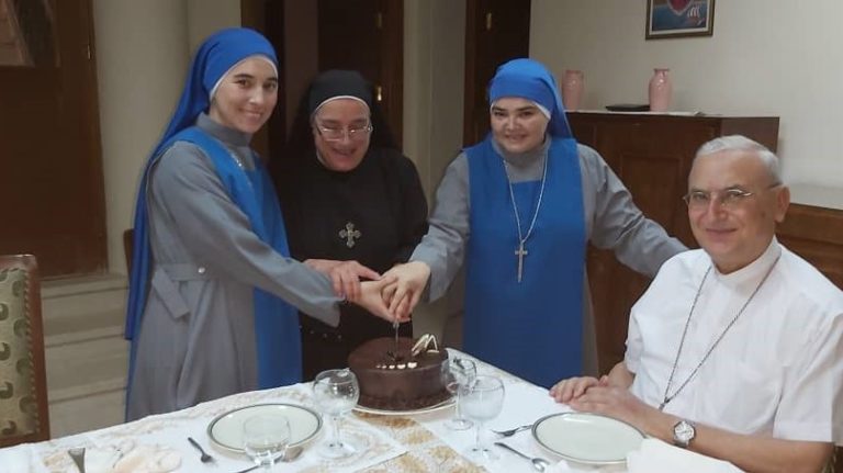 خلال القداس، شكر الكاردينال زناري الرهبنة التي كانت على استعدد لإرسال أخوات للعمل في السفارة البابوية، وشكرنا على وجه الخصوص بأننا بقبولنا المساعدة في السفارة البابوية فنحن نساعد بشكل غير مباشر قداسة البابا.