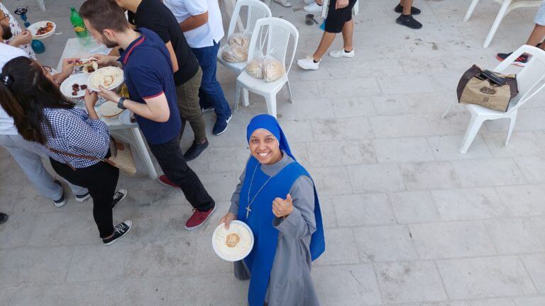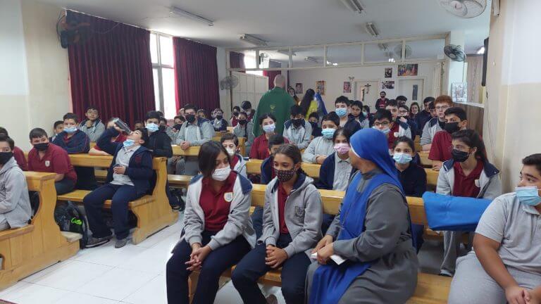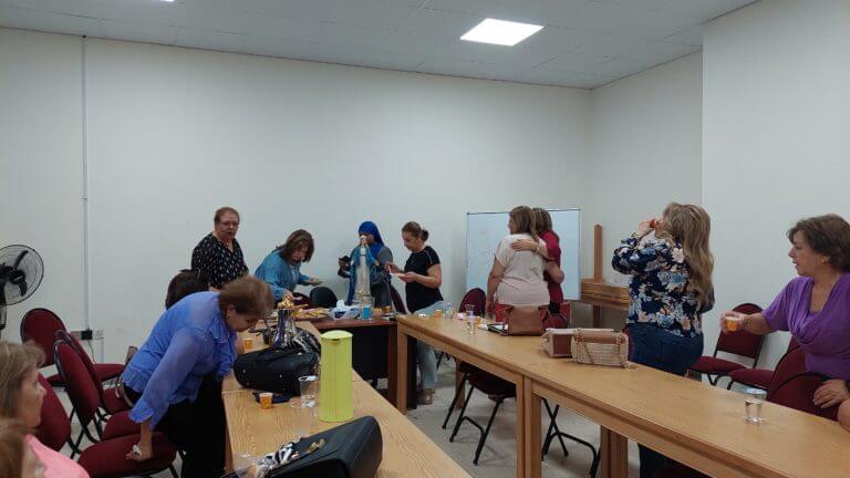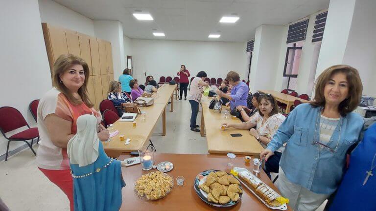- يوم الأربعاء الماضي ، أعدت مجموعة سيدات “الحبل بلا دنس” حفل استقبال للأخوات. صلينا المسبحة الوردية معا ومن ثم احتفلنا معا، فقد قامت بعض الامهات بتحضير الحلويات والمعجنات وكانت فرصة جميلة لنا للتعرف اكثر على هذه المجموعة الامينة على صلاة المسبحة الوردية..