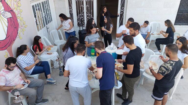 - اما يوم الجمعة فقد كان يوم جميل قضيناه مع الشبيبة الجامعية والتي من خلاله تعرفنا اكثر على شباب وشابات المجموعة من خلال غداء المشاوي الذي اقامته الشبيبة وعند نهاية الغداء احتفلنا بعيد ميلاد شابين من هذه المجموعة. وقد كان حاضر معنا ايضا الاب سلام حداد مرش الشبيبة في تلاع العلي وحضر ايضا كل من الاب رفعت بدر كاهن الرعية والاب متيوس الكاهن المساعد.