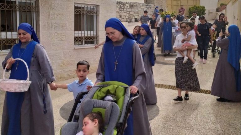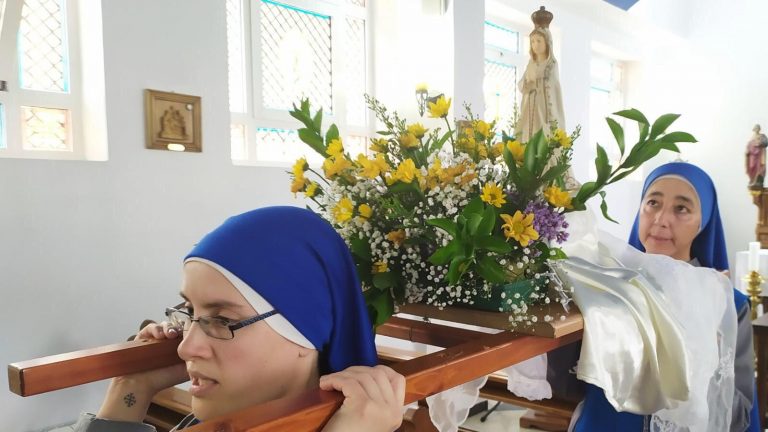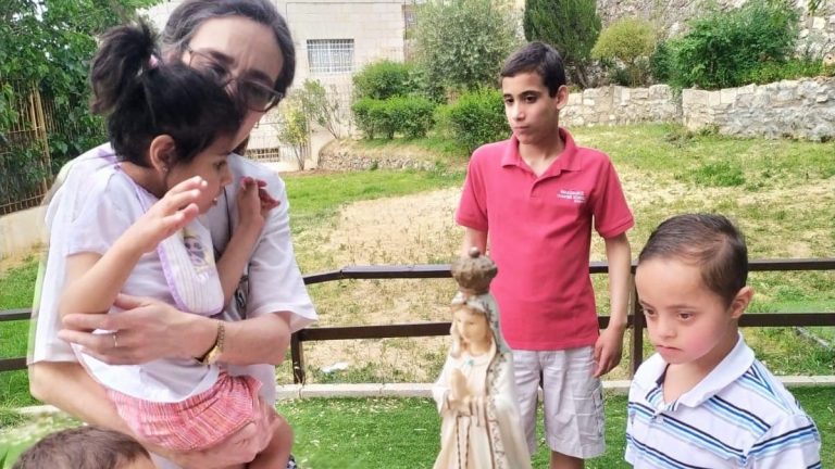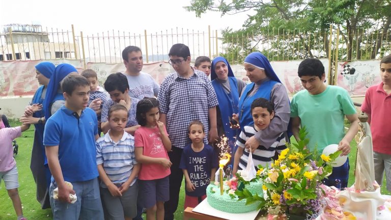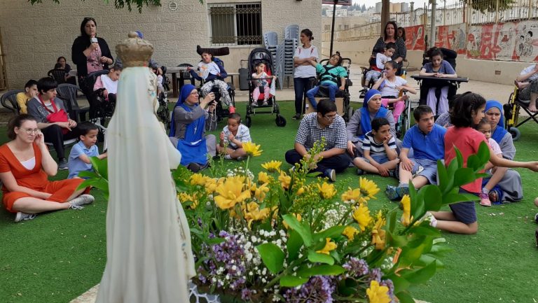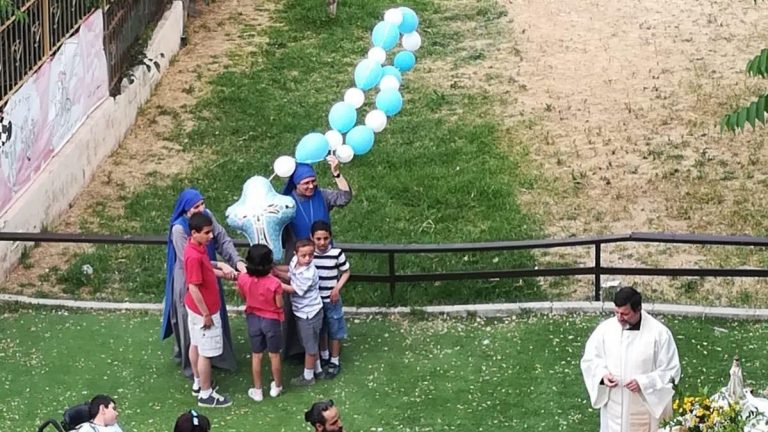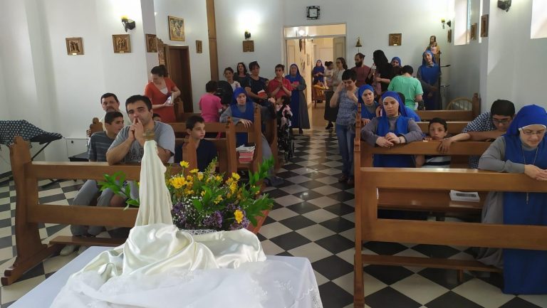 اعزائنا نشارككم هذه الصور للإحتفال الذي قام به الاب كارلوس فريروا الرئيس الاقليمي ومرشد بيت الطفل الالهي مع الراهبات والموظفين والاولاد بمناسبة عيد مريم العذراء سيدة فاطمة. حيثُ انهم بعد الاحتفال بالقداس الالهي قاموا بدورة في بيت الاطفال والحديقة حاملين تمثال مريم العذراء مرنمين لهذه الام الحنونة وبعد الدورة كان هناك العاب واغاني …
