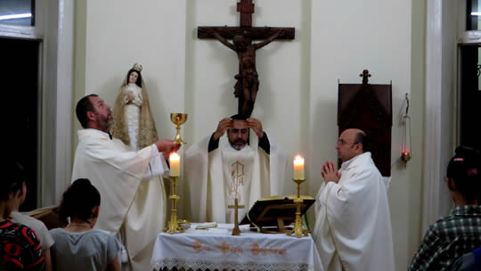 - الإفخارستية التي تَستمر بواسطة عمل الكهنوت الكاثوليكي، أيْ التجسُّد من خِلال عُنْصُرَي الخبز والخمر.