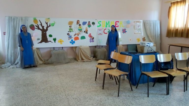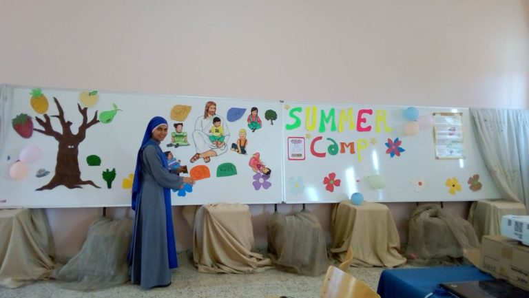 كتبت لنا الاخت مريم المتالمة مرسلة في عنجرة والمسؤولة عن المدرسة مع الاخت رجاء الكنيسة الصيفية لهذا العام تقول: “بدأنا المدرسة الصيفية في رعيتنا وقد سجل لهذا العام 60 طفل وطفله ، معظمهم من اولاد مدرسة سبدة الجبل. ساعدنا في هذا النشاط مجموعة من شبيبة الرعية ومتطوعين اتوا من اسبانيا لهذا الغرض. وقد كانت النشاطات كما يلي: اعمال يدوية متنوعة، رقص، غناء، اللعاب ومسابقات …الخ.