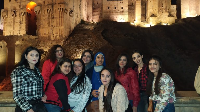 في زيارات مختلفة مع الشابات الجامعيات الى أماكن مختلفة في حلب ، جنبًا إلى جنب مع الطلاب الجامعيين الشباب ؛ قام الجميع مع الأب هوغو ألانيز والاخوات الراهبات في زيارة يوم الجمعة الماضي إلى قلعة حلب.