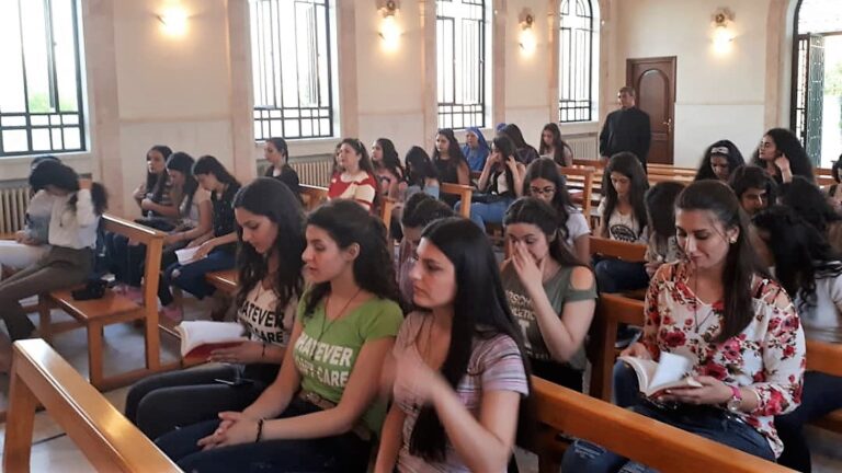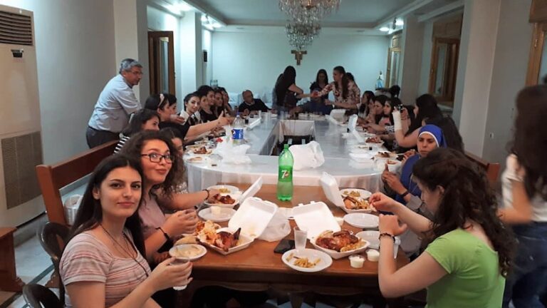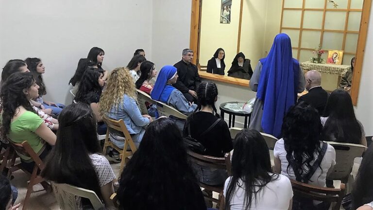 بعد انتهاء القداس الالهي كان هناك لقاء جميل بين راهبات الكرمل والطالبات حيثُ ان كثير من الطالبات يلتقن لآول مره مع الراهبات الحبيسات وقد طرحن عدة اسئلة على الراهبات حول الحياة التأملية.