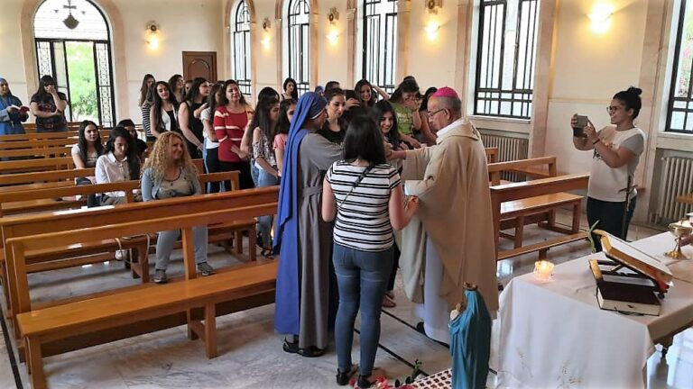 عيد مريم معونة المسيحيين في شهر ايار ، ولكن بما أن الشابات لم يكنّ في السكن في ذلك الوقت ، فقد احتفلن بعيد شفيعتهنّ في 16 يونيو وبهذه المناسبة 33 فتاة من هؤلاء الطالبات ارتدن كتافية ثوب العذراء سيدة الكرمل خلال القداس الالهي.