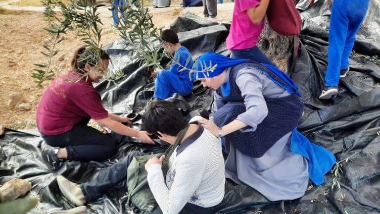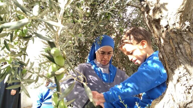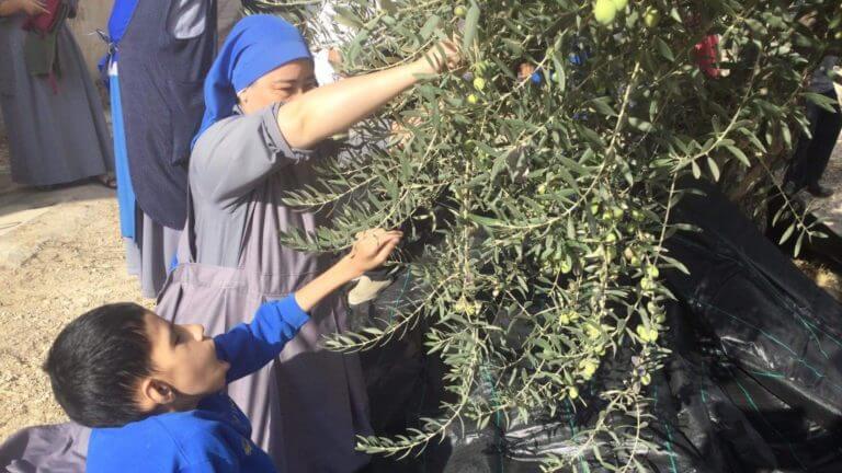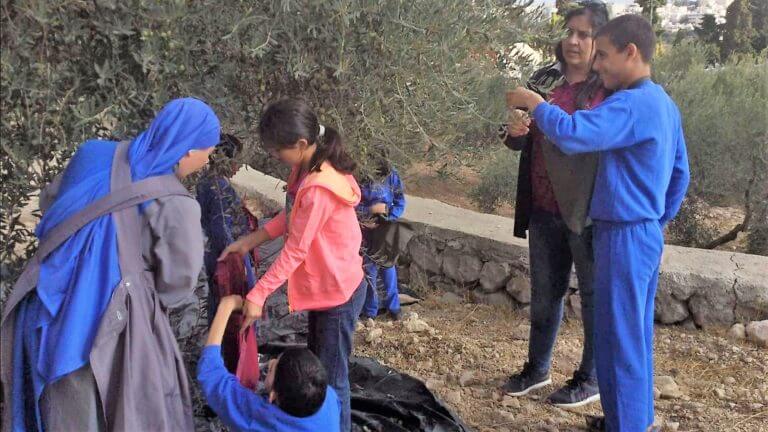 أعزائنا، كما تعلمون ان شهر تشرين الاول هو موسم قطف الزيتون، فقد ذهبنا هذا العام مع بعض الأطفال من بيتنا (بيت الطفل الالهي ) الى سمنير البطريركية اللاتينة في بيت جالا من اجل قطف الزيتون. والذين استقبلونا ورحبوا بنا بكل فرح.