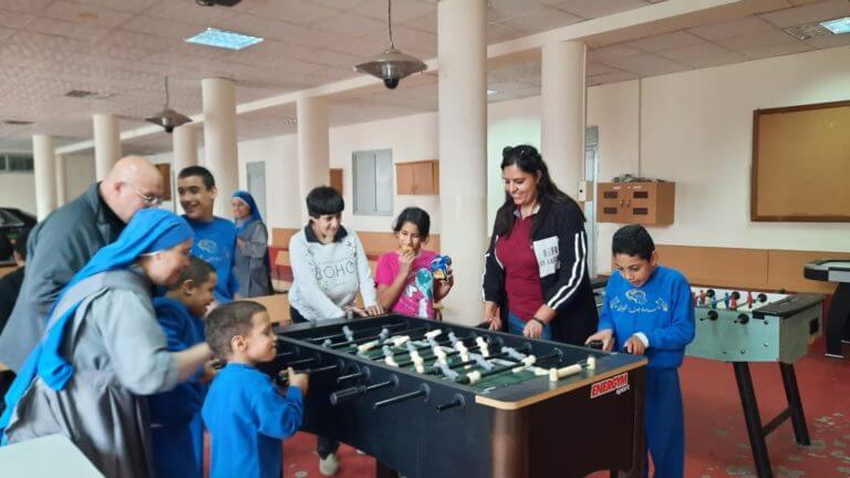 بعد “الانتهاء من القطف” قدم طلاب السمنير وجبة خفيفة للاطفال والراهبات وكان هناك وقت للترفيه أيضًا.