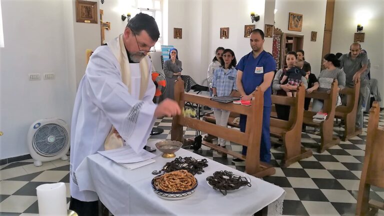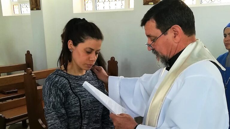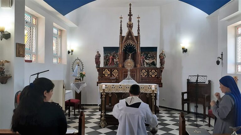 ويوم الجمعة 29/5 ، بدأ الاحتفال بصلاة المسبحة المقدسة التي تخللها تأملات مريمية امام القربان الاقدس ، كما تم تلاوة صلاة القديس يوحنا بولس الثاني للعذراء مريم ، بعد ذلك قام الأب كارلوس فيريرو ، IVE ، الرئيس الإقليمي في الارض المقدسة ، بمنح البركة مع القربان المقدس وثم اقام طقوس منح الكتافية.