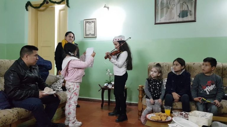 Luego del momento formativo compartimos la cena en un clima de mucha alegría, luego de la cual, los niños animaron la reunión con sus villancicos, cantos navideños y una de las nenas interpretó en violín” Adeste Fideles.”