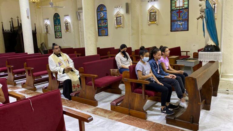 compartimos con ustedes algunas imágenes de la adoración eucarística y el rezo del Rosario con el grupo del grupo del oratorio que llevan el nombre de San José como su santo patrón. En esta hora santa participaron el padre Youssef Asaad, el párroco auxiliar, la hermana Pilar y los responsables del grupo del oratorio.