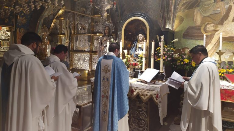 Después de la Santa Misa hemos renovado la consagración de nuestra Provincia a Nuestra Señora de los Dolores, en el mismo lugar del Calvario, en la Basílica del Santo Sepulcro.