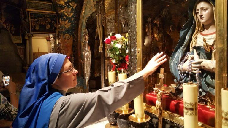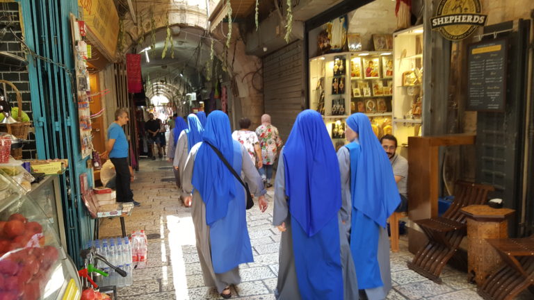 Después de la Santa Misa peregrinamos a Jerusalén, con la mayor parte de las hermanas para consagrar nuestra Provincia a Nuestra Señora de los Dolores, en el mismo lugar del Calvario, en la Basílica del Santo Sepulcro. Luego, fuimos a la Iglesia Armena dedicada a los Dolores de María, en la cuarta estación del via crucis, donde se conmemora el encuentro de Nuestro Señor con su Madre, camino al Calvario.
