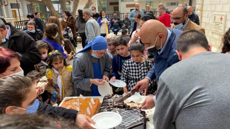 - El Día de la Madre: ya que en Medio Oriente se celebra esta fiesta el 21 de marzo, junto con el comienzo de primavera. El párroco en nombre de todos distribuyó ramos de flores a las mamás. Y se compartió una exquisita torta.