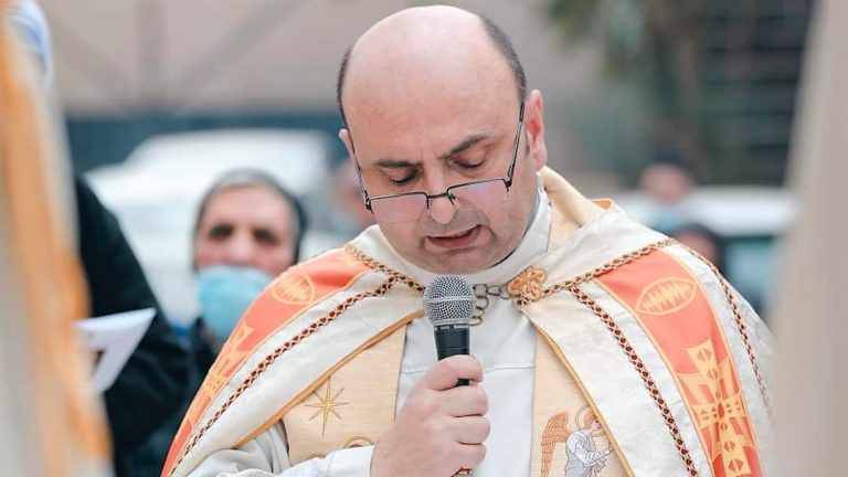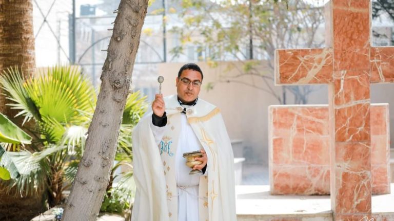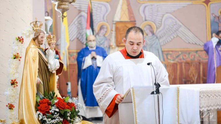 El P. Gabriel Romanelli, Párroco de Gaza, con su Vicario, el P. Iusuf Asaad, ambos misioneros del Instituto del Verbo Encarnado, consagraron, junto a la feligresía, a la Parroquia y a toda la Franja de Gaza a la protección de San José.
