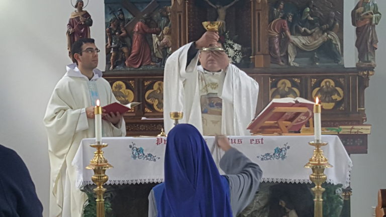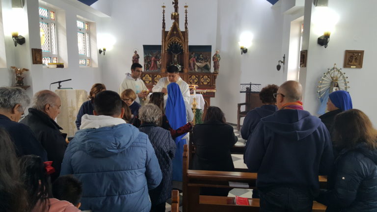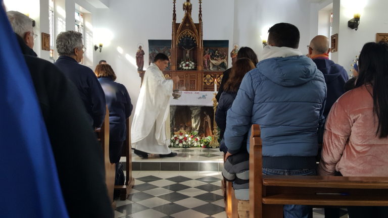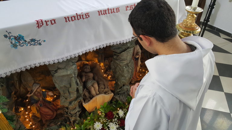 Los padres Marcelo Gallardo y Carlos Ferrero tuvieron la enorme gracia de Dios de poder celebrar la Santa Misa en la gruta del pesebre, una a la madrugada y otra al mediodía, y algunos de los voluntarios y hnas., pudieron estar presentes allí, entre emociones y sentimientos encontrados, viviendo este Sagrado misterio junto a la Sagrada Familia de Nazaret.