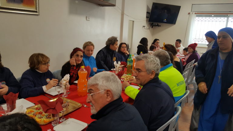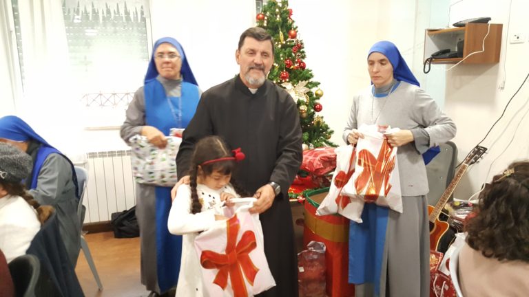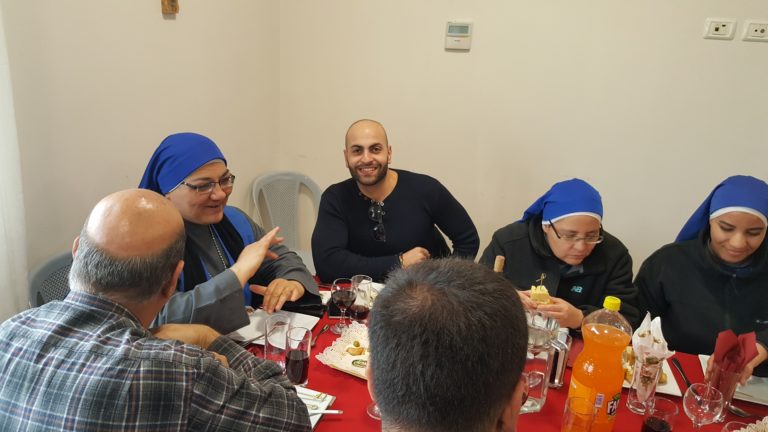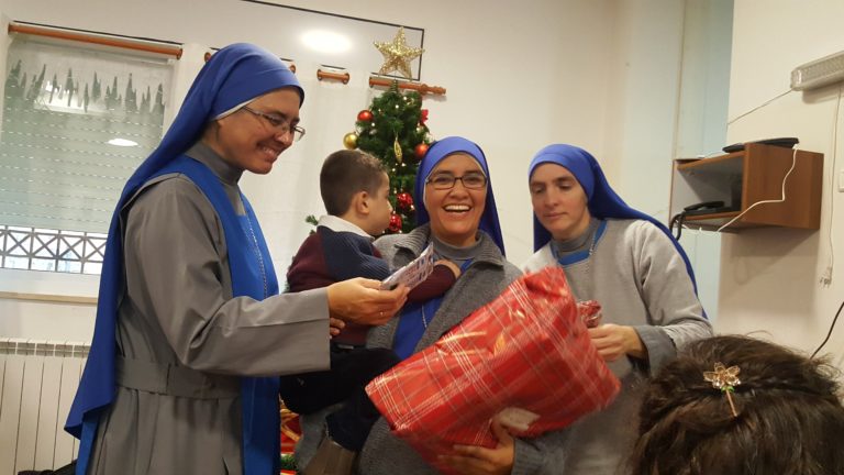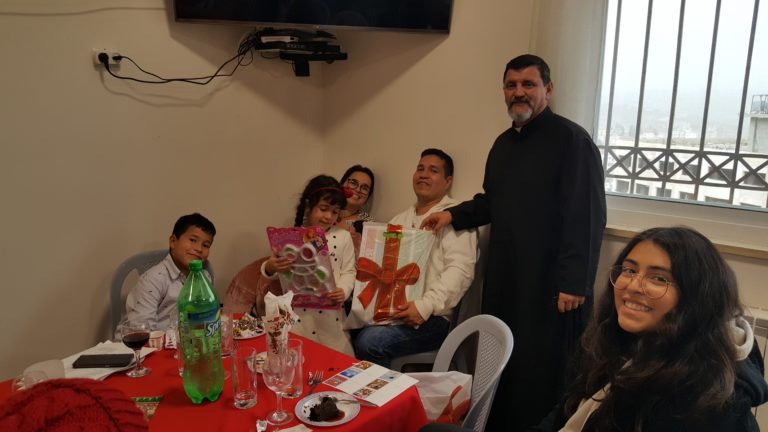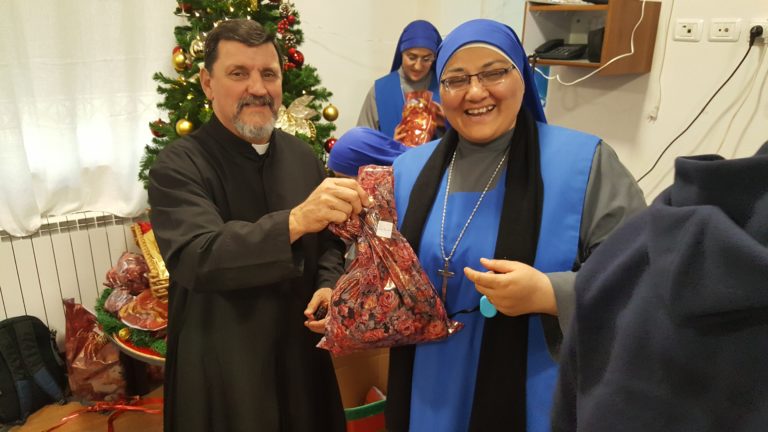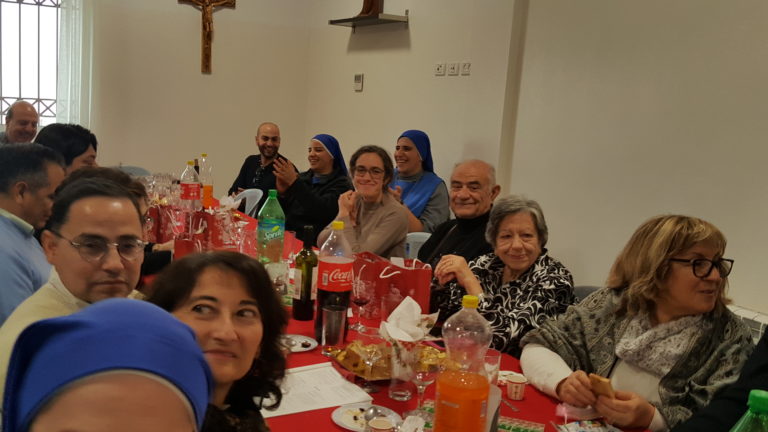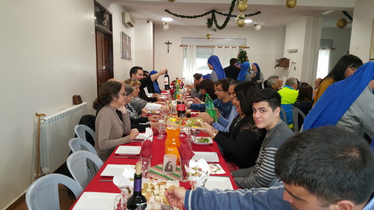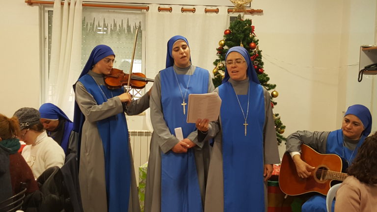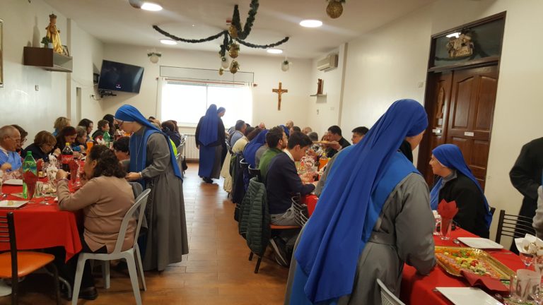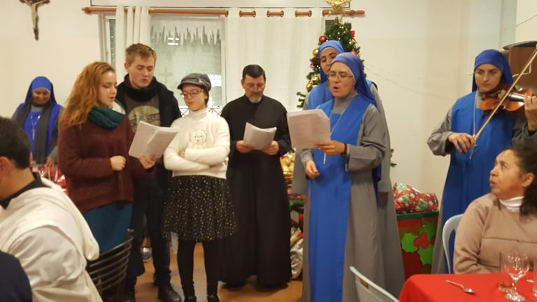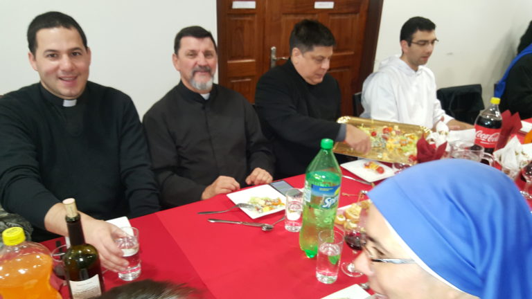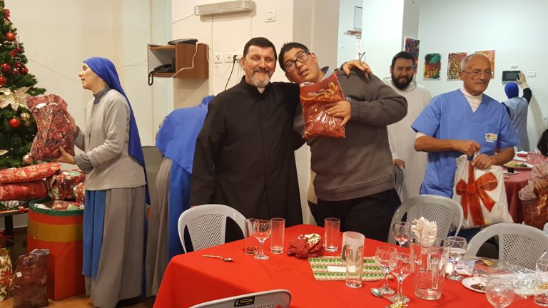 Por gracia de Dios toda la Familia Religiosa presentes en Tierra Santa se congregó en el Hogar Niño Dios para festejar todos juntos el nacimiento de Nuestro Salvador. Tuvimos la Santa Misa de Navidad por la mañana Presidida por el R. P. Carlos Ferrero junto con el P. Néstor. Luego tuvimos el almuerzo con los padres, monjes, hermanas de las comunidades del Seminario, yafo, Casa Provincial, hnas de Jordania, monjes de Séforis y padres del IVE, entre los que estuvieron presentes, nuestros Superiores provinciales, la Madre Maria del Cielo y el Padre Carlos Ferrero, también amigo y voluntarios y algunos miembros de la Tercera Orden. Compartimos un fogón, donde las hnas., padres y algunos voluntarios, presentaron sus talentos musicales, con cantos, villancicos, música clásica, en un clima de alegría navideña. El niño Jesús no solo bendijo nuestras almas con abundantes gracias espirituales, sino también con pequeños y grandes regalos para todos. Por la tarde festejamos la Navidad con los niños del Hogar, en un clima de profunda alegría, con villancicos, baile y la infaltable torta de cumpleaños al Niñito Jesús.