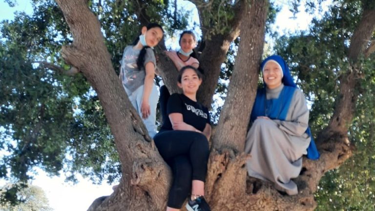 Corrían de aquí para allá trepando árboles de arriba abajo, de abajo arriba, y las monjas jugaban con ellas y se reían, y al mismo tiempo las miraban y compartían su alegría. Durante el viaje, visitaron el sitio de San Elías y tomaron algunos refrigerios.