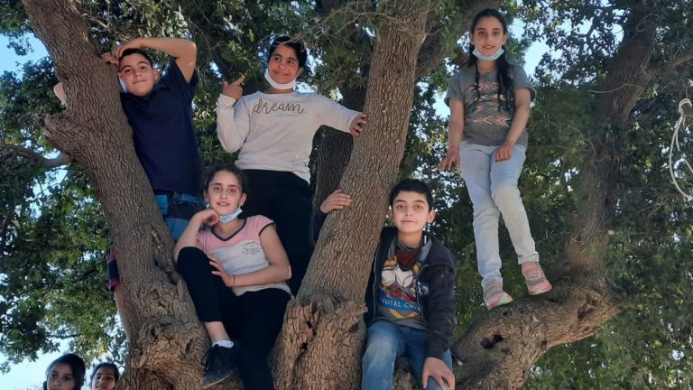 Diversión infinita. Esta fue la actitud de los niños cuando llegaron al sitio de san Elías profeta en Al Wahdinah cerca de Anjara, donde pasaron el día.