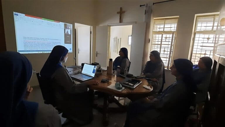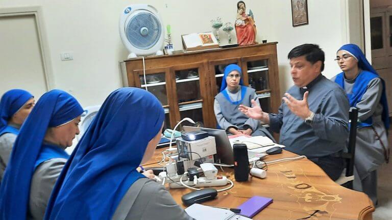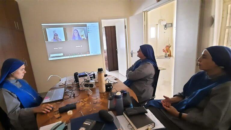 Las exposiciones estuvieron a cargo de algunas hermanas y de los padres. Participaban las hermanas de las casas de misericordia ( Hogar de ancianos y niños discapacitados) y por zoom las hermanas de los hogares de niños y adolescentes y las de la residencia de jóvenes universitarias.