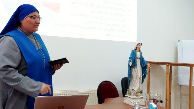 Todos los miércoles el grupo de las Señoras de la parroquia que tienen como patrona ¨ La Inmaculada Concepción¨ se reúne en la parroquia del Sagrado Corazón de Jesús. Por lo general, la reunión comienza con el rezo del Santo Rosario, y cuando termina, habrá un tema presentado por una de las mujeres o de las hermanas. Esta semana, la hermana Farah al-Masih presentó un tema sobre la preparación para el tiempo de Adviento, también tocó el tema de la confesión, que incluyó muchas preguntas y discusiones, especialmente sobre la confesión.