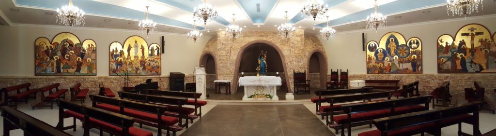 هذه الايقونات تكشف للحجاج أسرار السبحة الوردية التي تدعو بدورها الزائر لمرافقة العذراء في هذه الصلاة الرائعة. يحمل الرواق الأيسر أسرار الفرح واسرار النور، ويحمل الرواق الأيمن أسرار الحزن وأسرار المجد.